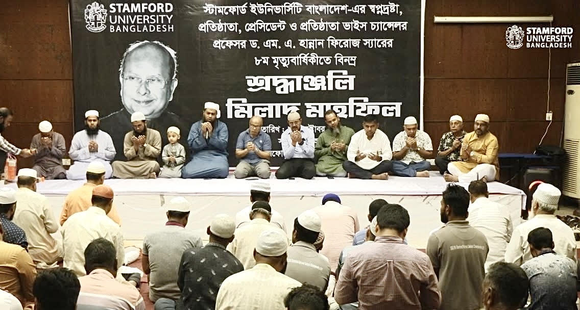 The Milad Mahfil was attended by Professor Dr Md Yunus Mia, Acting Vice-Chancellor of Stamford University Bangladesh; Registrar Muhammad Abdul Matin; Chairmen of various departments; faculty members; officials; and staff.