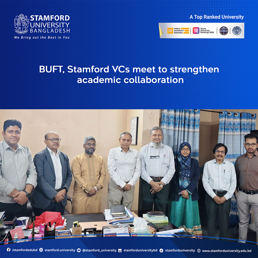 The Vice-Chancellor of BGMEA University of Fashion and Technology (BUFT), Prof Dr Engr Ayub Nabi Khan, paid a courtesy call on Stamford University Bangladesh Vice-Chancellor Dr Sharif Nafe As-Saber at the latter’s office in the capital on Sunday.