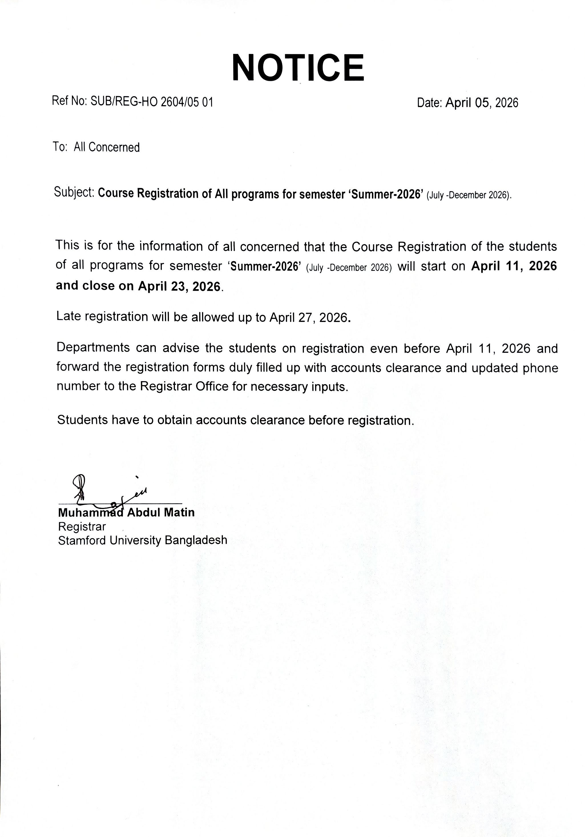 Course Registration of All programs for semester ‘Summer-2026’ (July -December 2026)