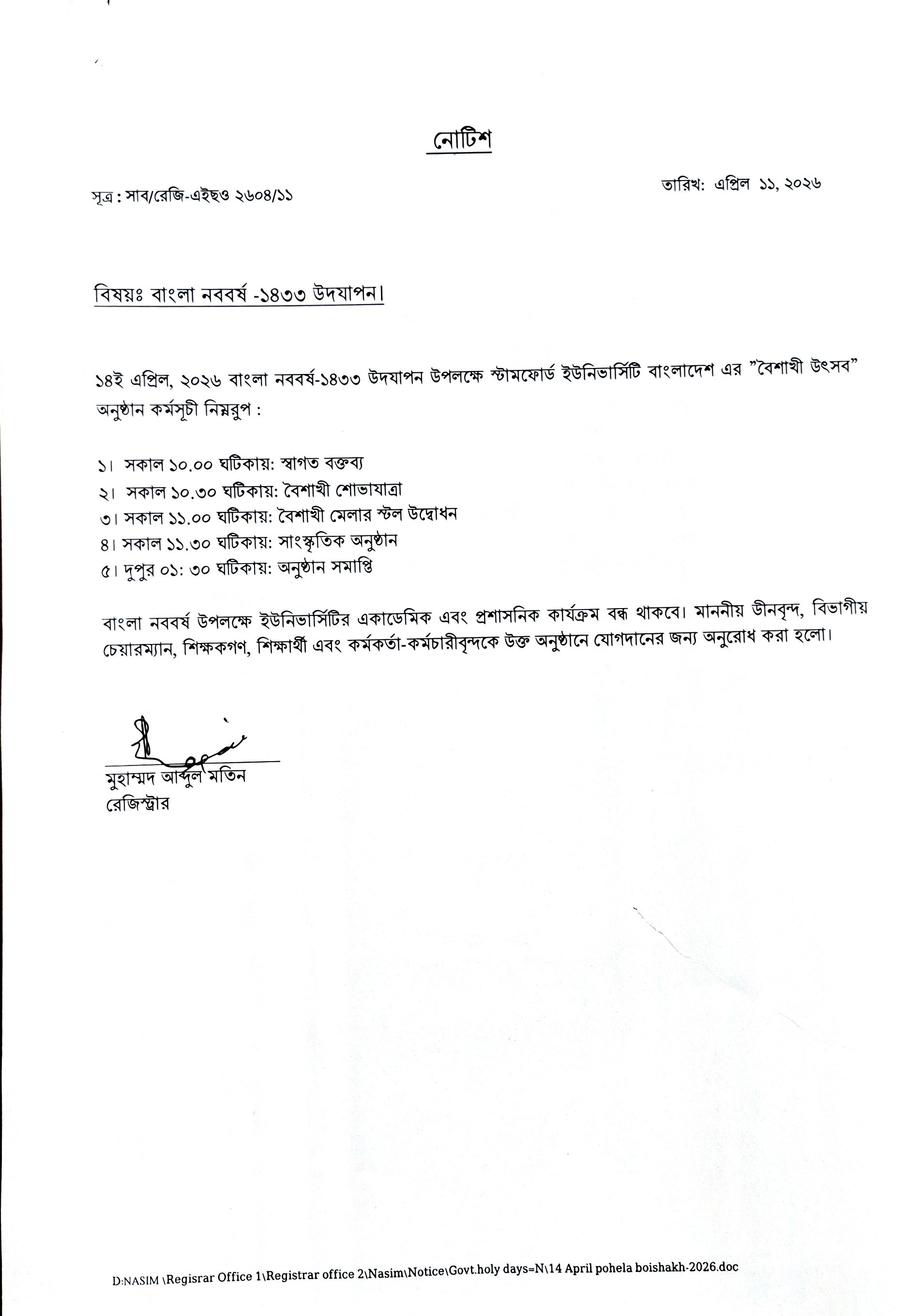 বাংলা নববর্ষ -১৪৩৩ উদযাপন