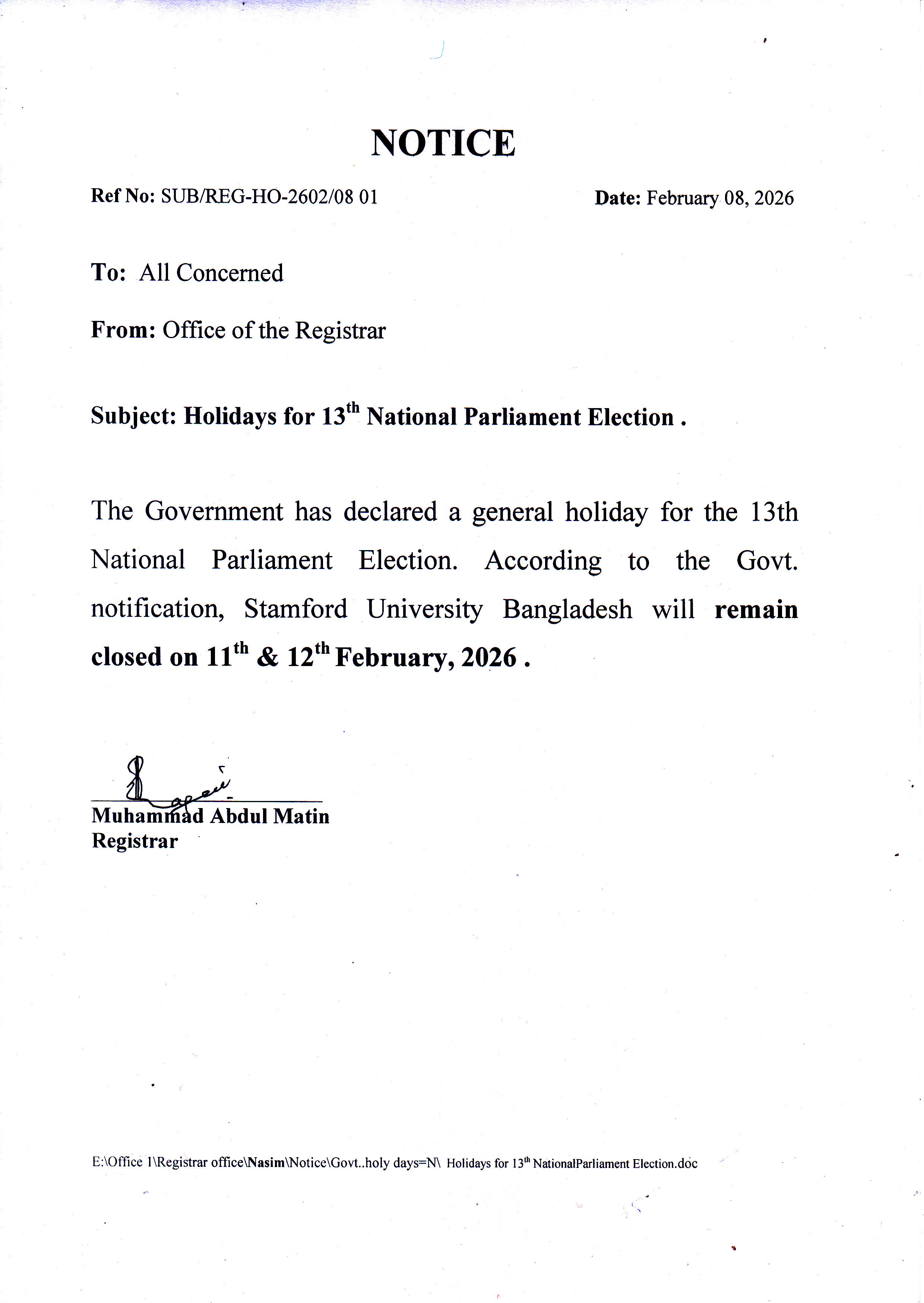 ভর্তি চলছে ! স্টামফোর্ড ইউনিভার্সিটি বাংলাদেশ - এ সামার ২০২৩ (২য় ইনটেক) সেশনে ভর্তি চলছে !